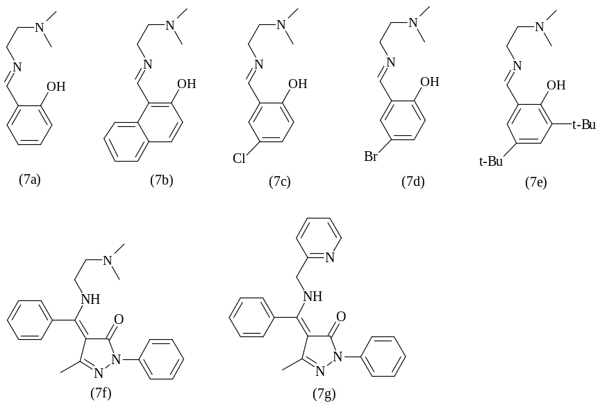 Рисунок 1.26 – Схематическое изображение лигандов – прекурсоров комплексов цинка (7a–7g) и магния (7f–7g)