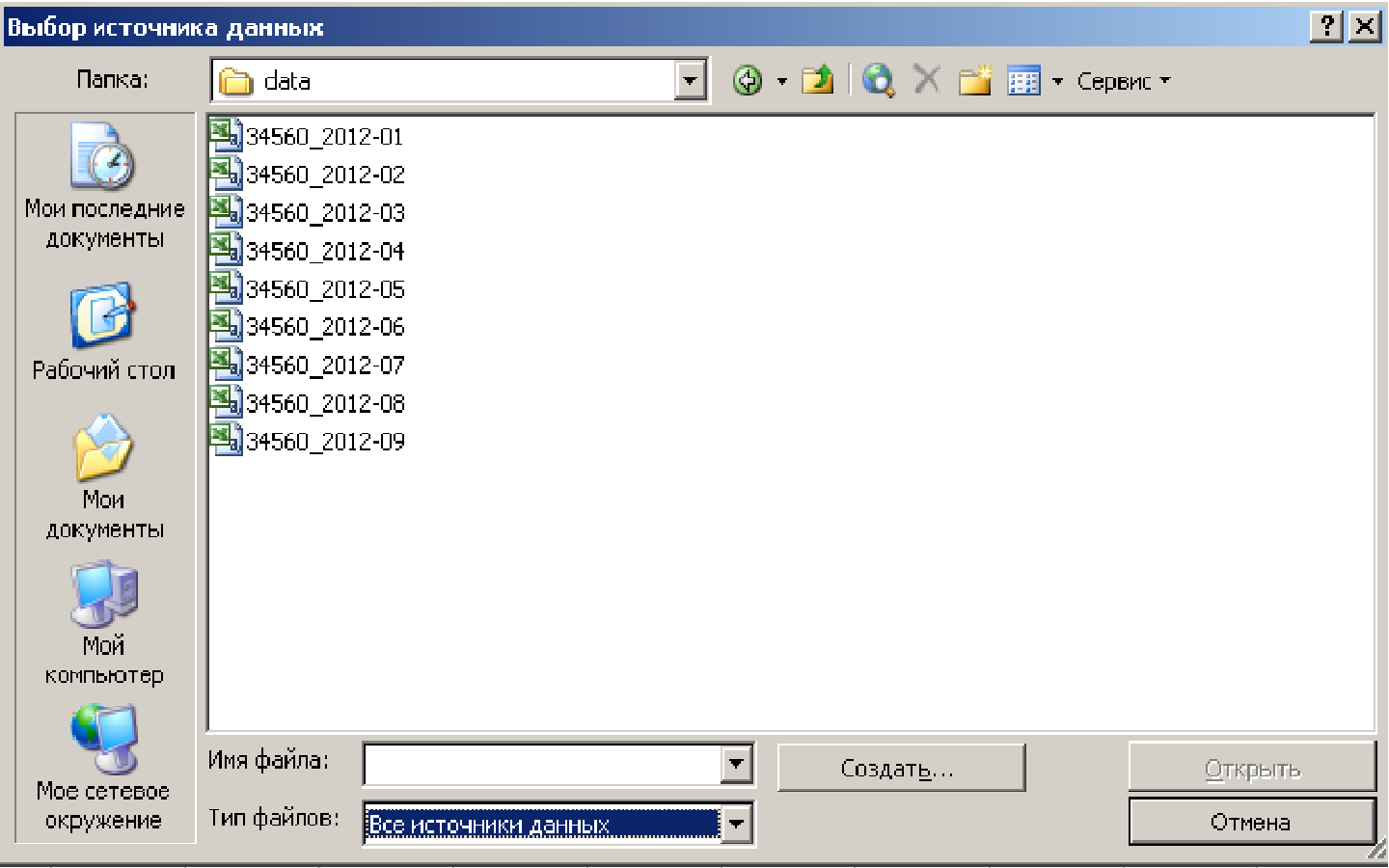 Щелкните на пункте главного меню Данные, затем последовательно на пунктах Внешние данные и Импорт текстового файла. Далее найдите в файловой системе файл с расширением csv, как показано на рисунке 1.