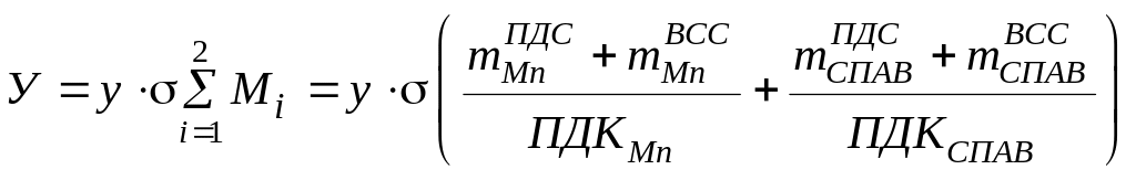 Подставив выражения для фактической и приведенной массы загрязняющих веществ, показатель относительной опасности в формулу для расчета экономического ущерба, получим выражение для расчета ущерба от сброса в водоем сточных вод предприятия, содержащих марганец и СПАВ,