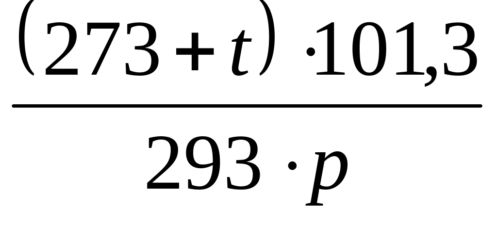 293 и 101,3 — температура (°К) и давление (Кпа), соответствующие нормальным условиям измерений (ГОСТ 12.1.014-84);