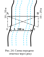 Рис. 26. Схема передачи отметки через водные преграды по урезу воды