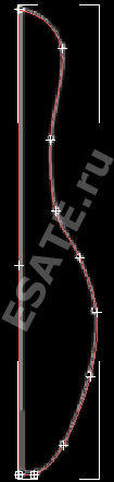 Рисунок 6. Синхронно перемещаются только маркеры подобных (в данном случае, исходящих) касательных векторов выделенных вершин При этом маркер касательного вектора, входящего во вторую сверху вершину, остается неподвижным, так как это вершина типа Bezier Corner (Безье с изломом).