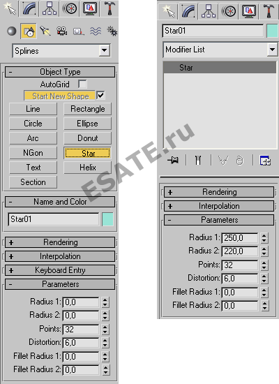 Для правки сплайна или двухмерной формы следует выделить объект и перейти на панель Modify. Если появится свиток Edit Object, параметры можно корректировать входящими в него средствами, иначе следует щелкнуть на кнопке Edit Stack и выбрать команду контекстного меню Editable Spline, что превращает объект в сплайн, допускающий правку.