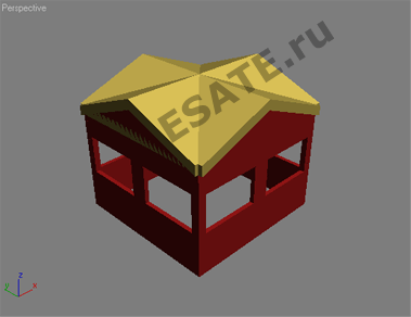 10. Постройтетакую же крышу, повернутую на 90 градусов. Должны получиться две пересекающиеся крыши (рис. 8).