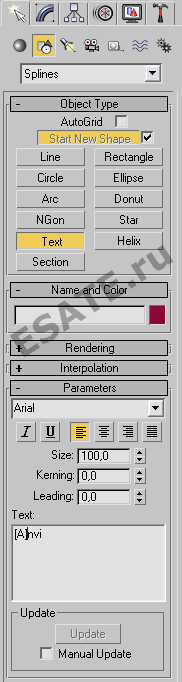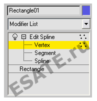 Если же сплайн представляет собой один из стандартных геометрических объектов, таких как Circle (Круг), Rectangle (Прямоугольник) или Ellips (Эллипс), либо является объектом Text (Текст), то для обеспечения возможности выбрать для редактирования уровень подобъектов-вершин необходимо щелкнуть на кнопке Edit Spline (Правка сплайна) в свитке Modifiers (Модификаторы).