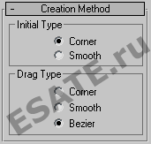 Рисунок 2. Свиток Creation Method (Метод создания) сплайна-линии позволяет настраивать типы вершин сплайна, создаваемых при рисовании с помощью мыши.