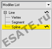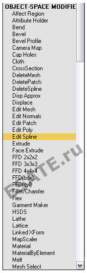 Рисунок 4. Выбор модификатора Edit Spline из списка модификаторов.