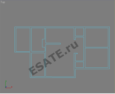 Выдавливание 2D-плана стены по толщине достаточно распространенный метод построения коробки помещения. Этот метод можно использовать, когда в стенах сложные проемы (например, сводчатые окна), или если в помещении есть одинаковые стены.