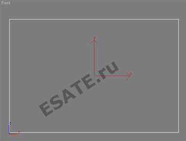 2. Увеличим размер окна Front, после чего создадим в нем плоскость с помощью команды Create -> Standart Primitives -> Plane, размером 558 x 642, настроем камеру так чтобы полностью видеть плоскость, как показано на рис. 1.