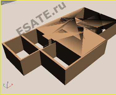 Рисунок 9. Визуализированная модель одноэтажного дома в 3d studio max.
