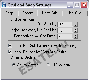 Рис. 3. Вкладка Home Grid (Исходная сетка) окна диалога Grid and Snap Settings (Настройка сетки и привязок).
