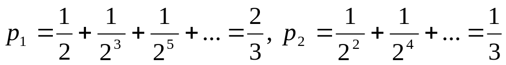Двое поочередно бросают монету. Выигрывает тот, у которого раньше появится герб. Определить вероятности выигрыша для каждого из игроков.