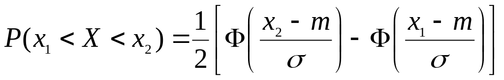 Записать формулу для вероятности отклонения нормально распределенной случайной величины от своего математического ожидания, по абсолютной величине не превышающего заданного значения.