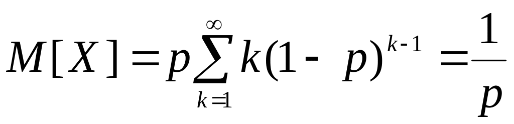 Для достижения намеченного результата потребуется ровно п опытов, если при п-м опыте он будет достигнут. Вероятность последнего события равна . Следовательно, математическое ожидание случайного числа опытов, необходимых для достижения намеченного результата,