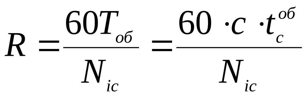 За основу расчетов принимают производственную программу ТО автомобилей. Ритм производства R – время, отведенное предприятием на пребывание одного автомобиля в зоне обслуживания (интервал времени между выходом двух последовательно обслуживаемых автомобилей), мин:
