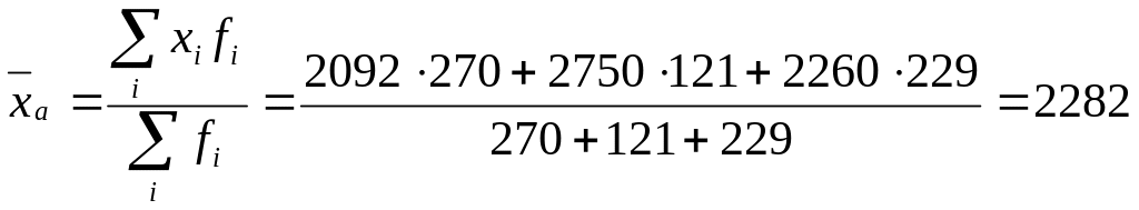 Средняя величина характеризует типичный уровень признака в совокупности. По данным вариационного ряда распределения средняя рассчитывается как арифметическая взвешенная.