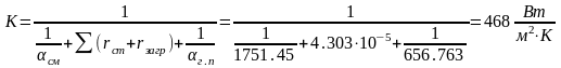 Теперь определим коэффициент теплопередачи по уравнению (72):