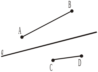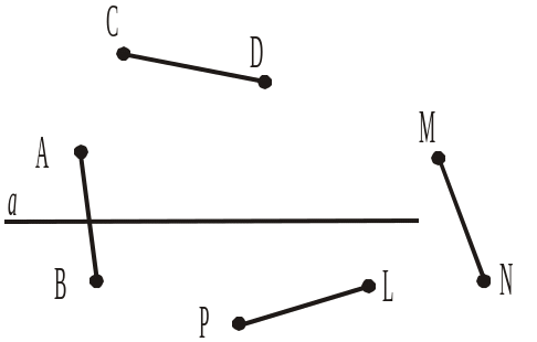 1. Як розміщені кінці відрізка АВ відносно прямої a? а) Лежать в одній півплощині; б) лежать у різних півплощинах. |