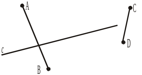 3. Як розміщені кінці відрізка CD відносно прямої с?