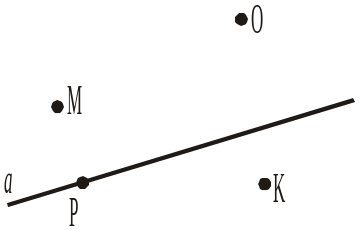 8. Відрізок OK не перетинає пряму b. Як розміщені кінці відрізка OK відносно прямої b?