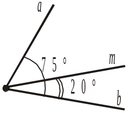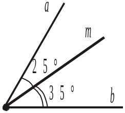 3. Промінь m (рис. 200) проходить між сторонами кута (ab). (am) = 25, (bm) = 35. Чому дорівнює градусна міра кута (ab)? а) 60; б) 10; в) 100. |