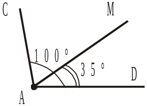 3. Від променя AD в одну півплощину відносно прямої AD відкладено кут MAD, що дорівнює 35°, і кут CAD, що дорівнює 100° (рис. 203). Чому дорівнює градусна міра кута САМ? |