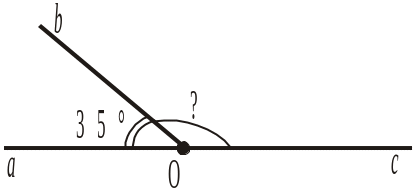 2. Промінь b проходить між сторонами розгорнутого кута (ас) і утворює зі стороною a кут (ab), що дорівнює 35° (рис. 208). Чому дорівнює кут (bc), що утворює промінь b зі стороною с? |