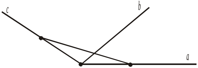 2. Який із променів — b чи c — проходить між сторонами кута, утвореного променем а і іншим з цих променів?