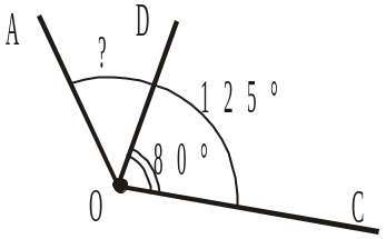 2. На рисунку 202 АОС = 125°, промінь OD утворює зі стороною ОС кут DOC, що дорівнює 80°. Чому дорівнює градусна міра кута AOD? |