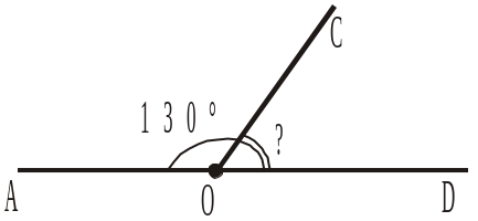 3. Промінь ОС проходить між сторонами розгорнутого кута AOD і утворює зі стороною OA кут АОС, що дорівнює 130° (рис. 209). Чому дорівнює кут COD, що утворює промінь OC зі стороною OD даного розгорнутого кута? |