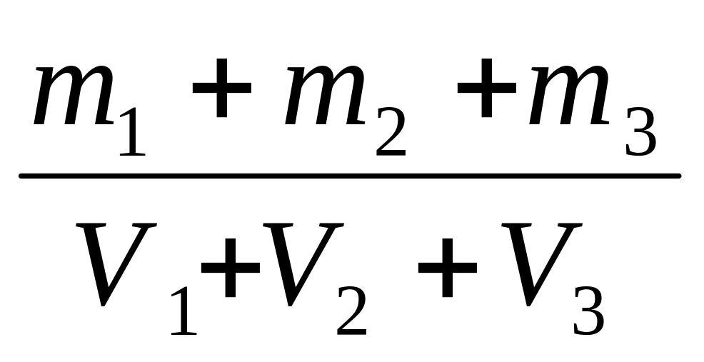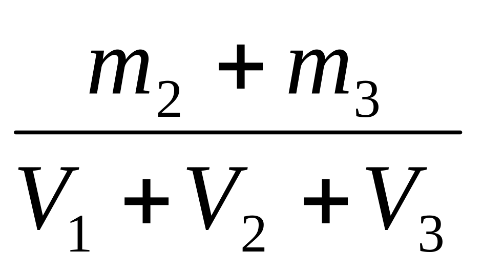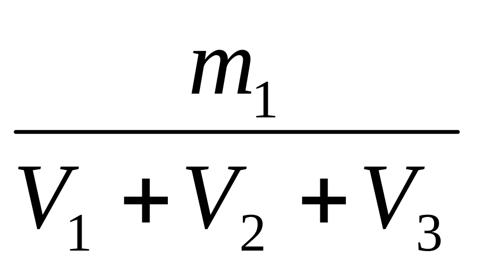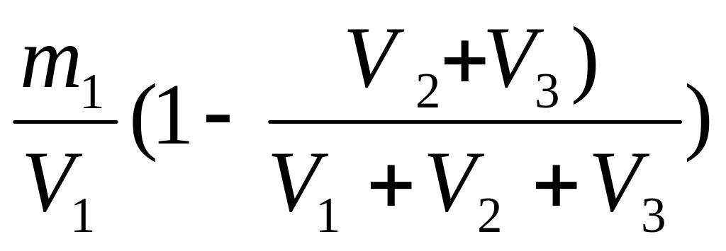где m1, m2, m3 и Vl, V2, V3 - соответственно массы и объемы вещества твердой, жидкой и газообразной фаз, а m и V - суммарная масса и объем всех фаз горной породы.