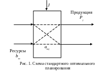 где в ограничениях по ресурсам и спросу, в целевой функции введены обозначения Pj, bm, Sj вектор-столбцы искомого плана, ограничения (размерности J, j = 1, J), ресурсов размерности M (m = 1, M); dmj элементы матрицы размерности M×J норм расхода ресурсов; Сj вектор-строка (размерности J) прибыли от выпуска единицы готовой продукции; G целевая функция.