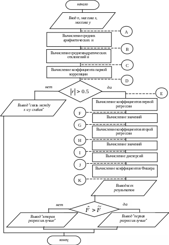 Для вычисления среднего значения фактических массивов x и y надо два раза обратиться к алгоритму SR с разными параметрами. Тогда схема схемы алгоритма блока: А-В будет иметь вид, изображенный на рисунке 4.4.