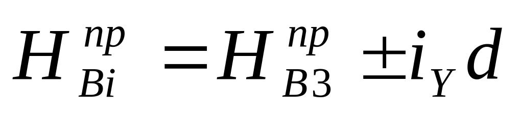 Проектные отметки направления В1-В5 вычисляют по формуле: