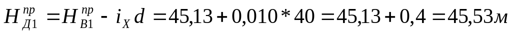 Проектная отметка для вершины Д4 по формуле (24) будет равна: