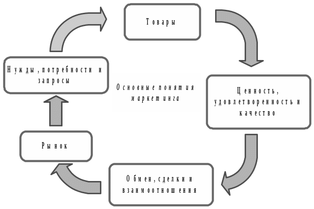 Основные категории маркетинга. Маркетинг можно определить как социальный и управленческий процесс, с помощью которого отдельные лица и группы лиц удовлетворяют свои нужды и потребности посредством создания товаров и потребительских ценностей и обмена ими друг с другом (рис. 1.4).