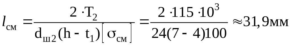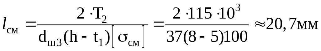 из условия прочности на смятие, приняв