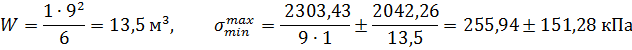 Вычисление производится по известной из курса «Сопротивление материалов» формуле внецентренного сжатия: