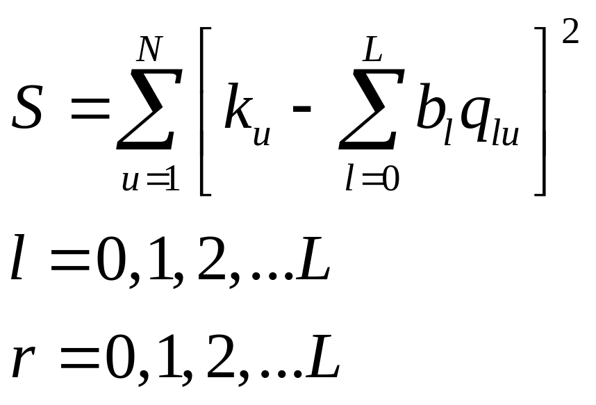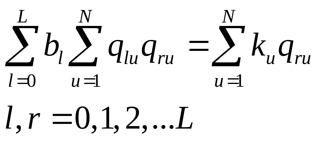 Если N≥(L+1) – неособенная матрица, то есть решение. Это уравнение можно решить на основе матричного метода. Система нормальных уравнений, которая включает в себя L+1 уравнение, решение этой системы позволяет определить значение bl оптимальные относительно критерия наименьших квадратов.