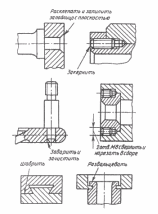 - указания о характере сопряжения разъемных частей изделия, а также указания о способе соединения неразъемных соединений, например сварных, паяных и др.;