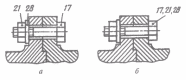Клапаны имеют типовые крепления на штоках или шпинделях. Крепления могут осуществляться или обжимкой клапана (рис. 4.3.11, а), или проволочной скобой (рис. 4.3.11, б), или кольцом из проволоки (рис. 4.3.11, в). Головка шпинделя может крепиться в прорези клапана (рис. 4.3.11, г).