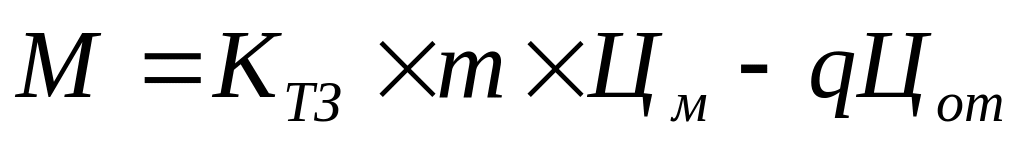 где КТЗ – коэффициент, учитывающий транспортно-заготовительные расходы (принять равным 1,1); m – масса детали, кг (т); Цм – цена материала заготовки, грн./кг (грн./т); q – масса отходов при изготовлении детали из заготовки; Цот – цена реализуемых отходов, грн./кг.