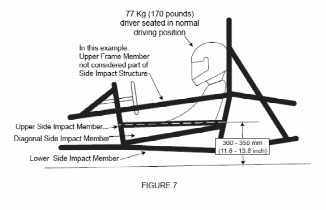 На этом рисунке верхний участок рамы не является частью боковой защитной структуры. Водитель весом в 77 кг (170 фунтов) сидит в автомобиле в нормальной позиции.
