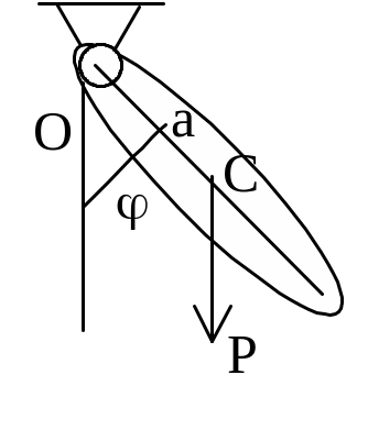 Физический маятник – твердое тело, совершающее колебания вокруг неподвижной горизонтальной оси под действием силы тяжести. Ур-ние вращательного движения: