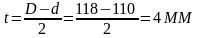 L=(D-dl)/2,=(118-110)/2=4 мм
