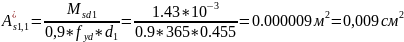 Определяем требуемую площадь сечения арматуры рабочей сетки