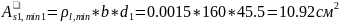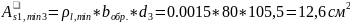 Определяем минимальную площадь сечения рабочей арматуры в расчётных сечениях