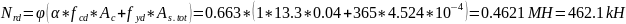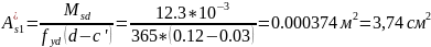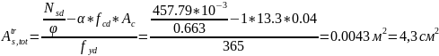 б)Арматура 4 Ø 12 Аs,tot=4.524см2