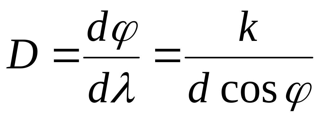 Нехай є дві близькі довжини хвилі і . Відстань між максимумами для і знайдеться|перебуде| з|із| умови, що визначає положення|становище| максимумів:
