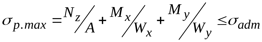 2. Определяем опасное сечение. Так как размеры поперечного сечения по высоте стойки постоянны, то все сечения равноопасны.